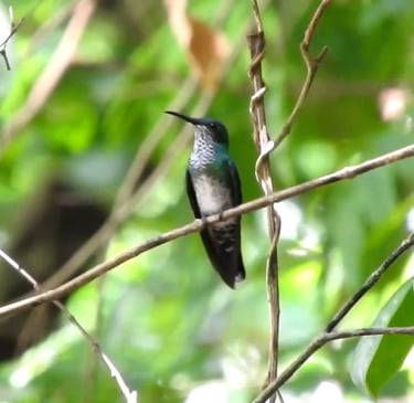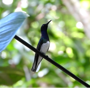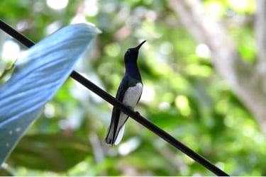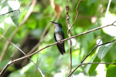 We finish near our favourite hummingbird feeders, where it’s possible to see White-necked Jacobin, White-bellied Emerald, Emerald-chinned Hummingbird, Long-billed Hermit, Wedge-tailed Sabrewing, and Violet Sabrewing.
